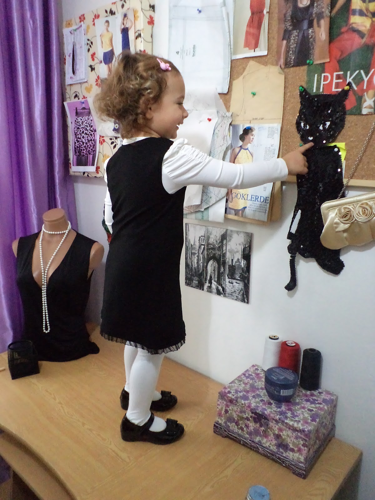 Puantiyeli eteğide geçen sene ben dikmiştim. BU YAZIMDA bulabilirsiniz.Nazın üstündeki drapeli bluz ise hazır ama gene üzerindeki bazı süslemeler de bana ait.